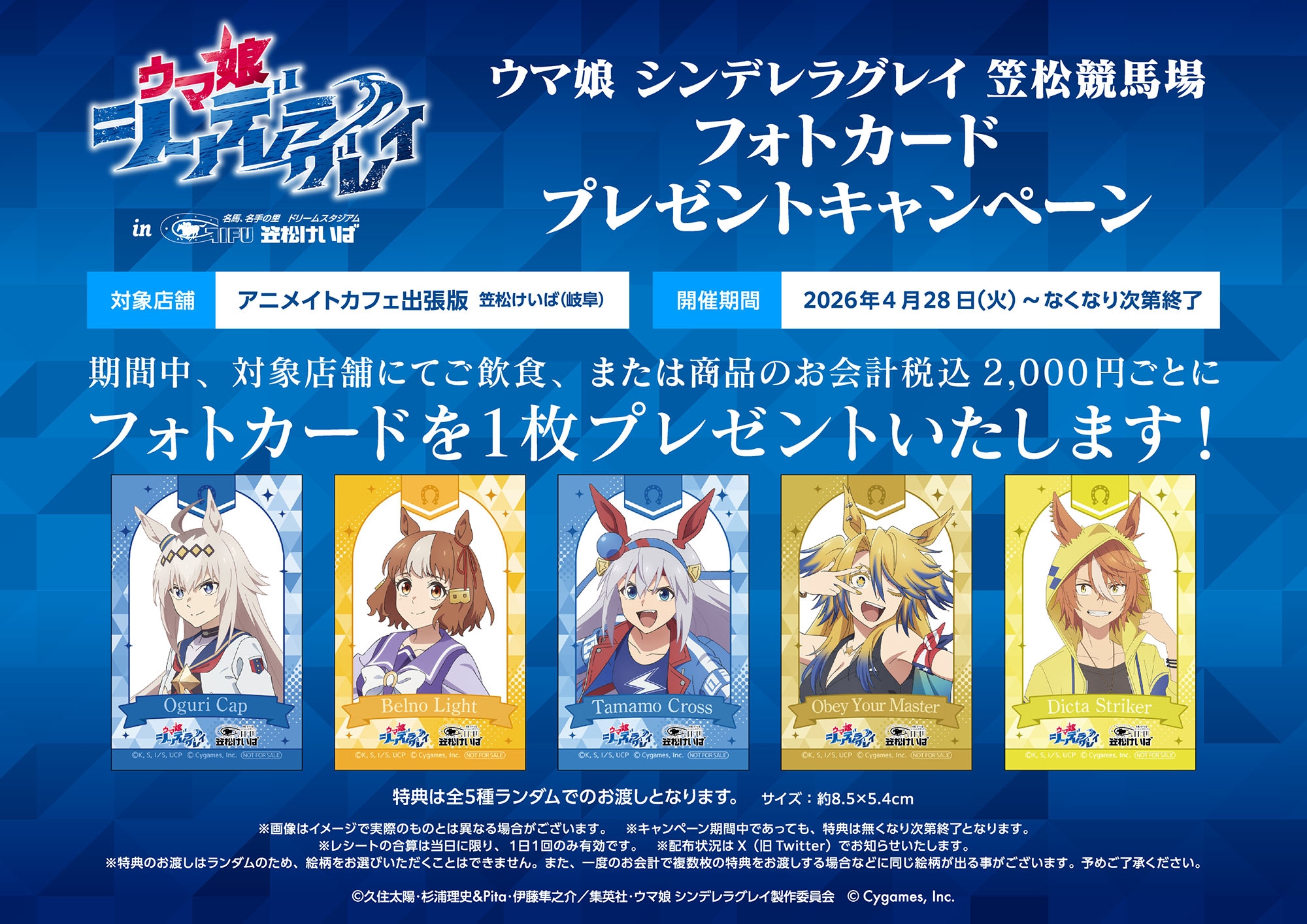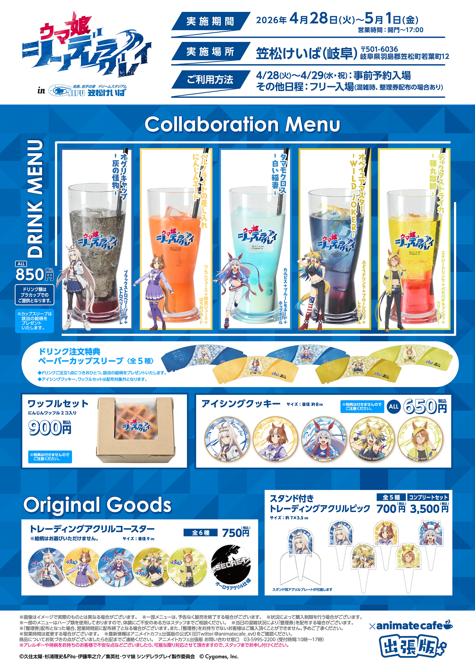 ※「LINEアプリ」が必要となります。事前にLINE(無料)をダウンロードのうえ、「笠松競馬場アニメイトカフェ出張版2026」を友だち追加してください。